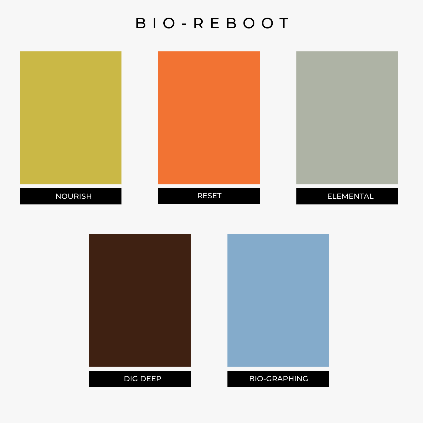 - Bio-Graphing: A soft, clinical blue with a hint of redsymbolizing a detoxifying reset and fresh start.